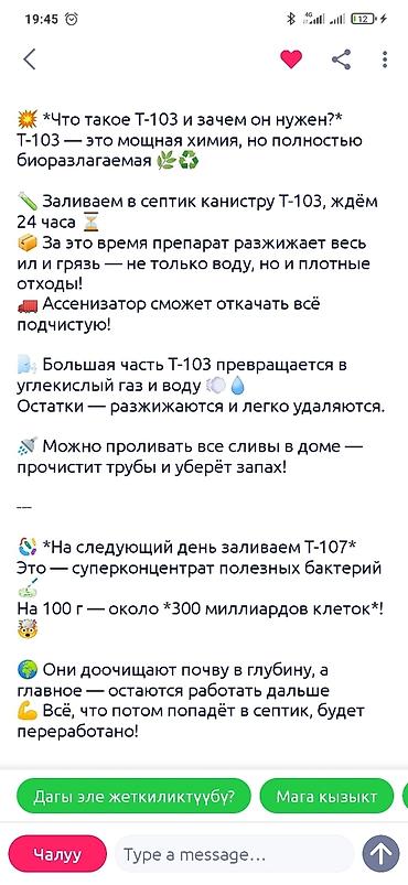 Универсальное средство для очистки септиков и выгребных ям. Препарат T-103 предназначен для разрушения и разжижения ила, жира и других органических отложений, способствуя восстановлению проходимости канализационных труб и устранению неприятных запахов. Он разлагает твердые отходы, превращая их в углекислый газ и воду, что облегчает последующую откачку. Подходит для профессионального использования, обеспечивая чистоту и эффективность. Рекомендуется применять для поддержания чистоты и предотвращения засоров в системах канализации домов, офисов и складов.