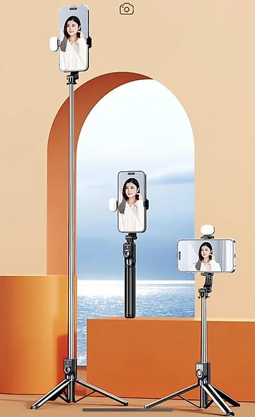 В комплекте: штатив-селфи-палка с треногой, держатель для телефона, Bluetooth-пульт.