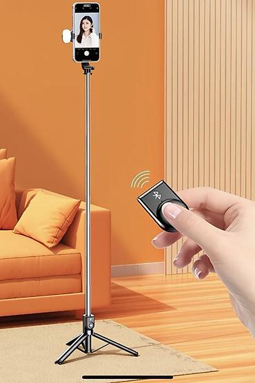 - 2-в-1: селфи-палка и напольный штатив с раскладывающимися ножками.