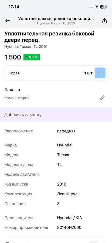• Hyundai Tucson 1.7 CRDi 2017 — авторазбор на запчасти Привезен из