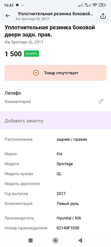- Предназначение: уплотнение проема задней правой двери, защита от воды, пыли и шума, сохранение герметичности салона