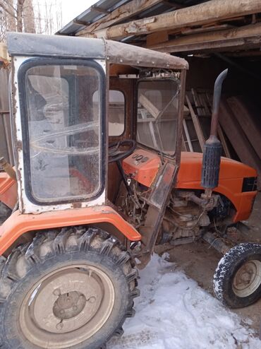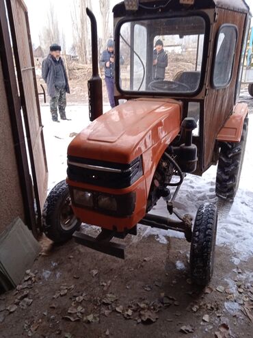 Трактор колесный, с кабиной, синего цвета. Полный привод (ведущие передние и задние колеса), передний мост портального типа. Установлена высокая выхлопная труба, передние круглые фары, задние рабоч...