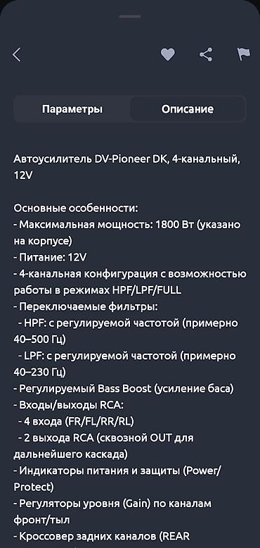 Автомобильный 4‑канальный усилитель Pioneer для Android‑монитора (DSP Power Amplifier D11) Ключевые особенности: - 4 канала для подключения фронт/тыл или фронт + саб через линейные выходы - Диапаз...