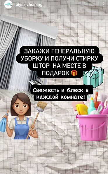 - При заказе генеральной уборки — стирка штор на месте в подарок