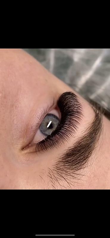 - Техника: плотная и ровная линия, аккуратная база без склейки, сохранность натуральных ресниц. Выкладка ресничка к ресничке или объемные пучки вручную.