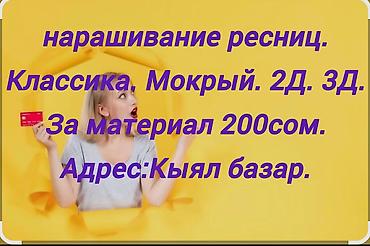 Услуга: наращивание ресниц - Локация: город Ош - Выезд на дом есть - График: работаем 24/7 Аккуратное, выразительное оформление взгляда, удлинение и объем по желанию. Подбираем изгиб, толщину и д...
