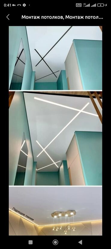 Предлагается услуга по монтажу натяжных потолков. В ассортименте представлены матовые и сатиновые варианты, а также потолки с фотопечатью, имитирующие небо с облаками и звездами. Доступны различные дизайнерские решения, включая парящие линии освещения и трековые системы. Услуга подходит для оформления жилых помещений, офисов и коммерческих объектов, позволяя создать современный и эстетичный интерьер с учетом индивидуальных предпочтений.