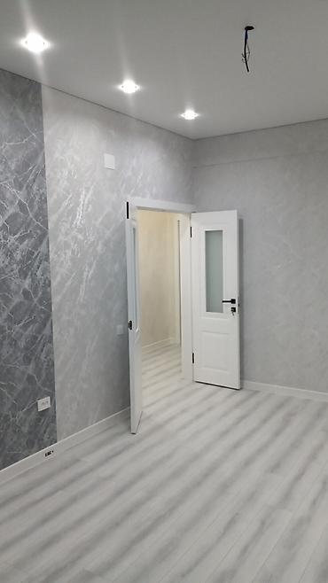 - Планировка: отдельный коридор с несколькими дверями в комнаты; просторная комната с декоративными стенами «под мрамор»; ещё одна комната в нейтральных бежево-серых тонах; раздельная зона санузла с ванной.