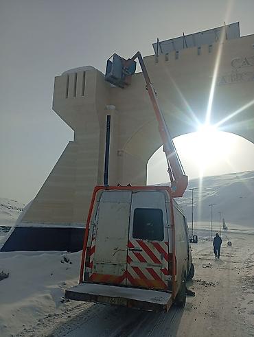 Аренда автовышки (коленчатый подъемник с люлькой) - Тип: коленчатая автовышка на базе фургона - Работы на высоте: монтаж/демонтаж вывесок, фасадные и кровельные работы, обслуживание систем видеона...