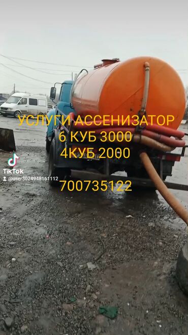 Ассенизационные услуги в Бишкек - Выкачка и вывоз сточных вод, септиков, выгребных ям, биотуалетов - Спецмашина с герметичной емкостью и мощным вакуумным насосом - Гибкие шланги большой длины для...