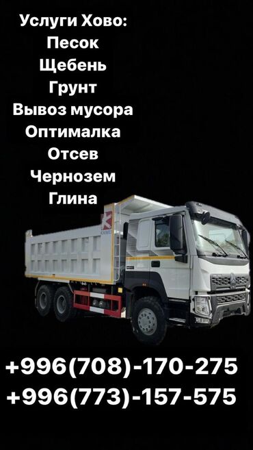 Услуги Хово! Howo!! Песок, грунт, отсев, щебень,гравий,оптималка, вывоз мусора!!! Услуги хово! Услуги Howo! Услуги хова!! Также есть услуги экскаватора! ! ! Котлованы, траншеи, вывоз мусора, се...
