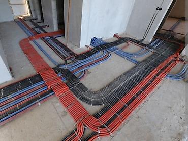 Электромонтажные работы включают прокладку кабелей и проводки для скрытой установки в полу или стенах. Провода уложены в защитные гофрированные трубы для дополнительной безопасности и организации, с подключением к распределительному щитку. Подходит для жилых и коммерческих помещений, требующих надежной и аккуратной электропроводки.