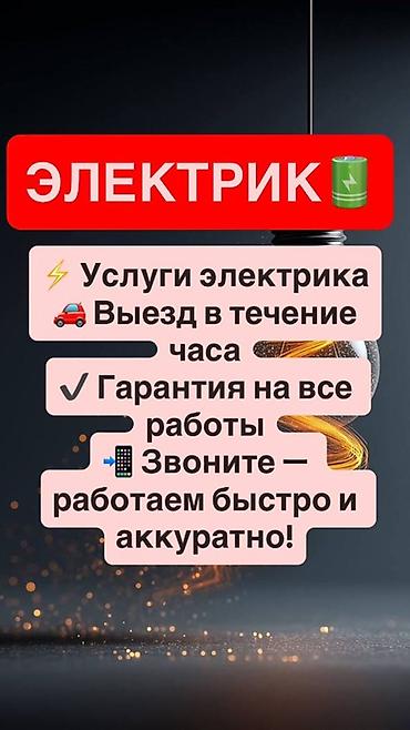 Услуги квалифицированного электрика в Бишкеке: монтаж проводки, установка розеток и выключателей, ремонт электрооборудования. Выезд в день обращения, гарантия 1 год, цены от 500 сомов. 24/7