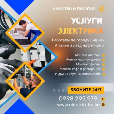 Услуги электрика — Бишкек Профессиональные электротехнические работы: - Ремонт освещения - Ремонт и модернизация электропроводки - Проверки электробезопасности Режим: звонки 24/4 Phone Number:
