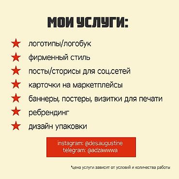 ✨ УСЛУГИ ГРАФИЧЕСКОГО ДИЗАЙНА ✨ 🎨 Создаю стильный, современный и аккуратный дизайн под любые задачи! Что могу сделать для вас: 🔥 Логотипы и фирменный стиль 📦 Упаковка, этикетки, стикеры 📋 Меню, п...