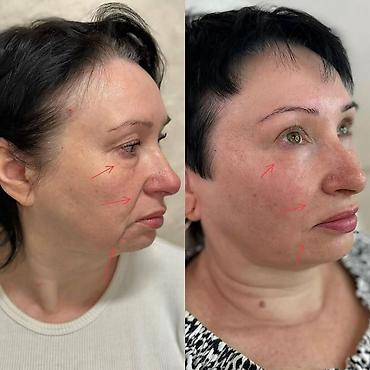 - Биоревитализация и мезотерапия лица: выраженное сияние кожи, улучшение текстуры и тона, уменьшение мелких заломов, интенсивное увлажнение.