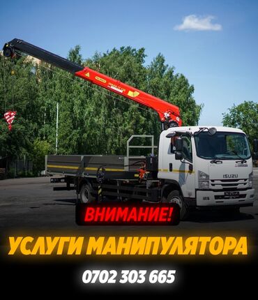 Услуги манипулятора (Бишкек) - Бортовой грузовик с краном-манипулятором для погрузки, разгрузки и перевозки. - Подходит для стройматериалов, паллет, блоков, плит, оборудования и крупногабаритных г...