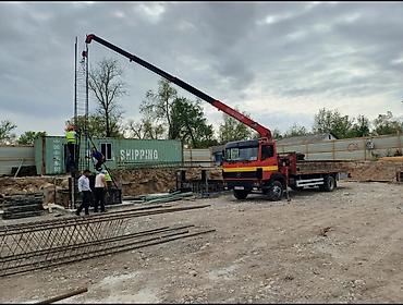 Услуги манипулятора (грузовик с краном-установкой) - Бортовой грузовик Mercedes с краном-манипулятором UNIC. - Перевозка и погрузка/разгрузка строительных материалов, бытовок и контейнеров, пилома...