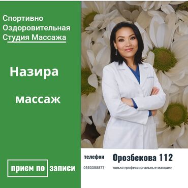 Спортивно-оздоровительная студия массажа Услуги: - Профессиональные спортивные и оздоровительные массажи - Прием по записи Специалисты: Бегайым, Назика, Анна, Назира Локация: ул. Орозбекова, 112...