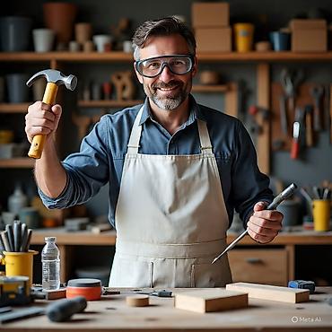 Инструмент свой: профессиональные наборы для дерева, металла и электрики, расходники по задаче. Работа аккуратно, с соблюдением техники безопасности и чистоты на объекте.