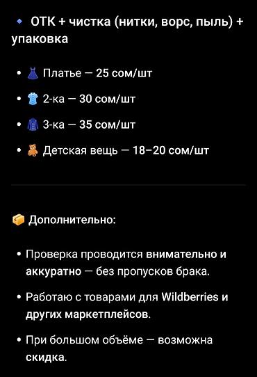 Услуги ОТК для маркетплейсов (Wildberries и др.) Варианты услуг: -