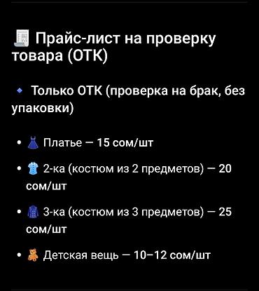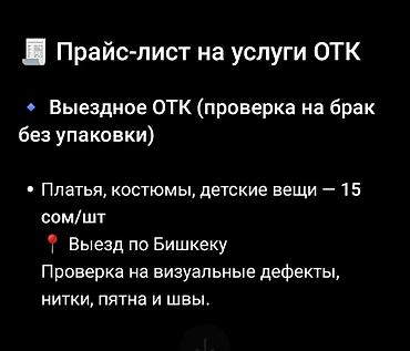 - Только ОТК (проверка на брак без упаковки, выезд по Бишкеку):