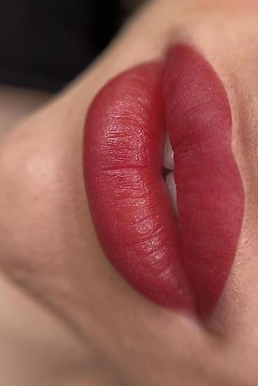 - Акварельное/нюд-татуаж губ и плотная «помадная» растушёвка: выравнивание контура, камуфляж легкой асимметрии, придание объёма за счёт света и тени. Богатая палитра — от естественных розово-бежевых до насыщенных ягодных и красных оттенков.