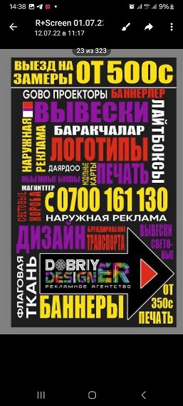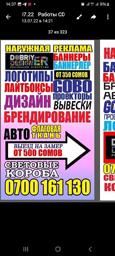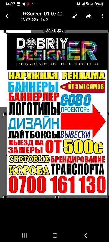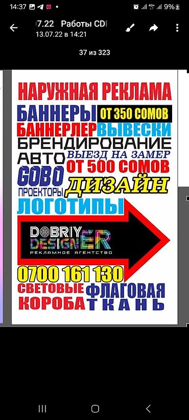 - Баннеры и печать баннеров (от 350 сомов — указано на макете)