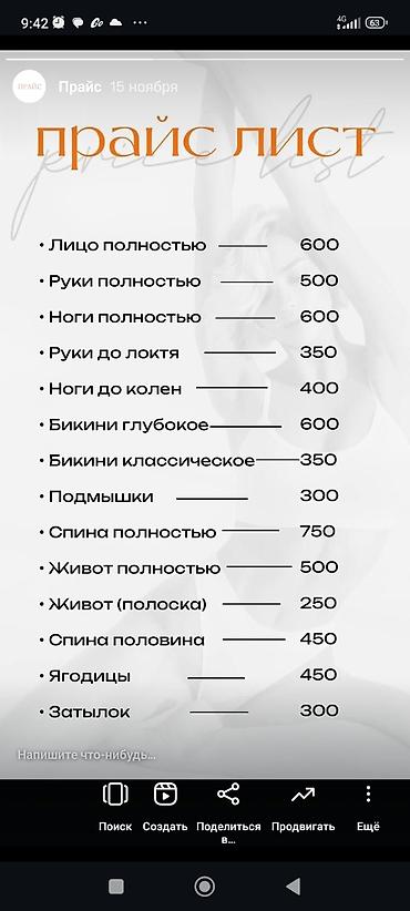 Шугаринг — аккуратно и бережно Услуги: - Все тело: руки и ноги полностью + подмышки + бикини — 1800 сом - Частично: руки до локтя + ноги до колен — 1200 сом Особенности: - Чисто, комфортно, без с...