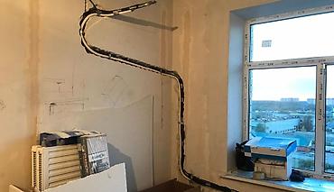 Закладка трассы фреонопровода под систему кондиционирования на этапе ремонта. Что выполняется: - Штробление стен/потолка и прокладка медных труб фреонопровода в теплоизоляции. - Прокладка дренажно...