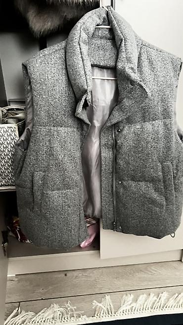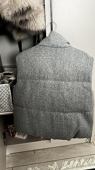Серая утеплённая жилетка без рукавов.