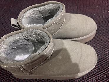 Утеплённые короткие угги/ботинки-дутики цвета бежевый/хаки.