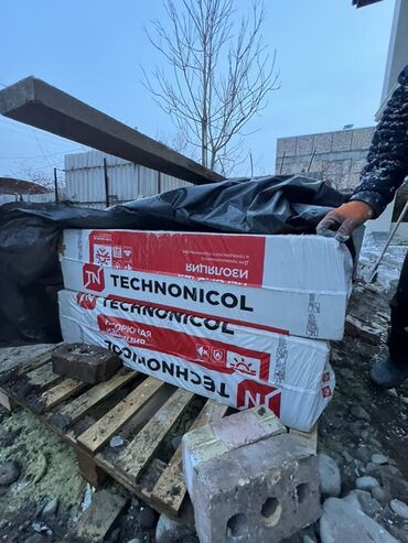 - Упаковки плиты TECHNONICOL Технофас Декор 50 мм, 1200×600 мм. Маркировка на пачках и этикетки с характеристиками присутствуют на фото.