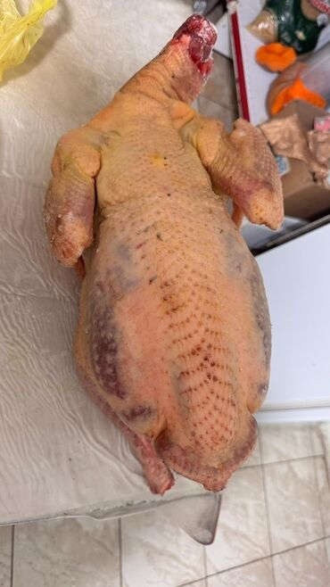 - Желтоватая кожа с характерным жирком — подходит для запекания целиком, конфи, тушения, супов и бульонов
