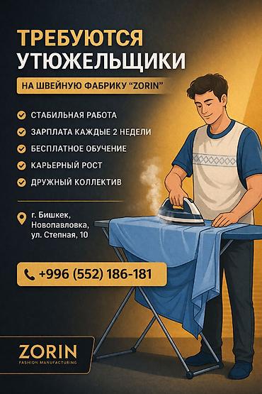 Приглашаем утюжельщиков на работу на швейное производство «Zorin».
