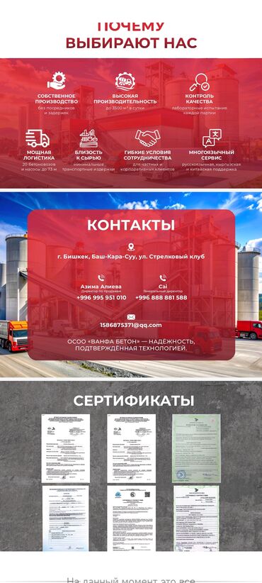 Бетонный завод Бетон Строй Готовый Бетон Бетон с доставкой Раствор Миксер Бишкек бетон бетон в Бишкек с автобетоносмесителям и Собственный автопарк гарантия качества Помпа бетононасос Описан...