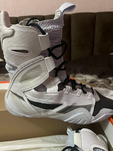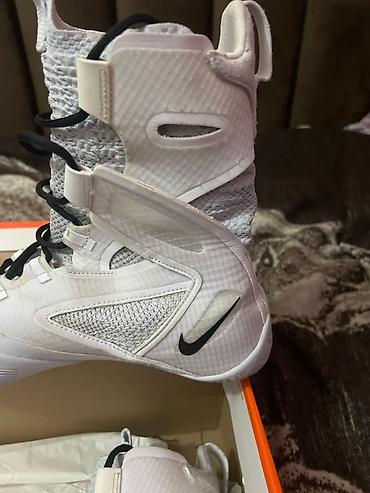 Боксерские ботинки Nike (модель Nike Boxing) — высокий силуэт, белый цвет с черными акцентами.