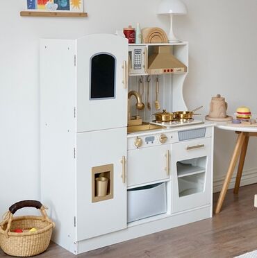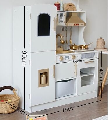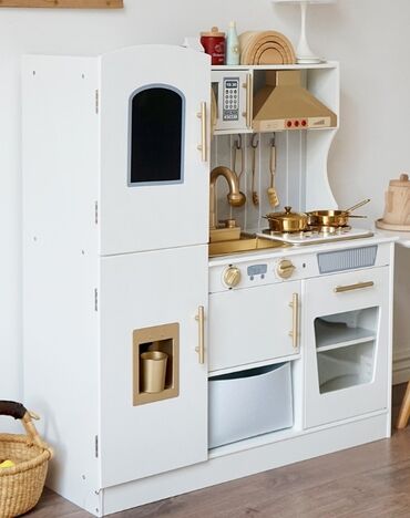 Детский игровой кухонный набор, выполненный из дерева, предлагает реалистичный опыт игры в кулинарию. Включает в себя раковину с краном, плиту с поворотными ручками, духовку с прозрачной дверцей, м...