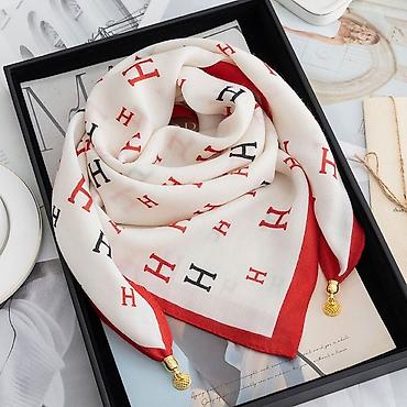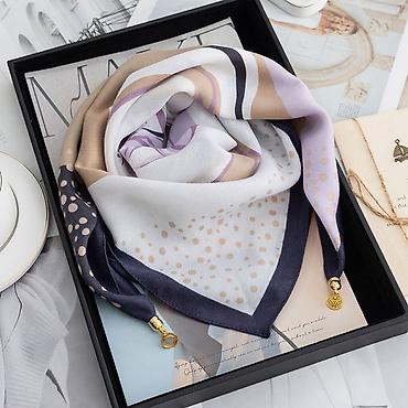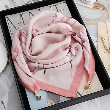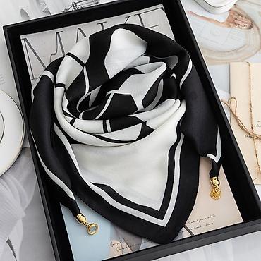 • Платок, Косынка, Осень-весна, Шелк, С узорами