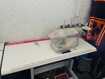 Готовый к работе комплект промышленного оверлока BRUCE X5S со столом и всем необходимым для эксплуатации.