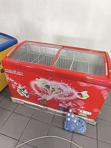 - Ларь «Новый Век» (красный) – стеклянные сдвижные створки, несколько секционных корзин, рекламная оклейка под мороженое. Удобный доступ для покупателей, наглядная выкладка.