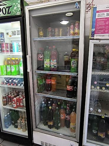 - Вторая витрина с верхним рекламным коробом, стеклянная дверь, полки, встроенный вентилятор для равномерного охлаждения.