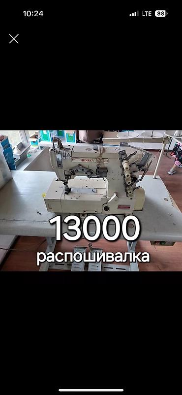 Продам швейные машинки автомат 3 штук Брюс по 25000, 3 штук дума по 25000 сом, 1 штук босс 27000, 1 штук жак пол автомат 15000, 4 нитки по 25000 есть 2 штук, распашивалка 35.000, утук парагенератор...