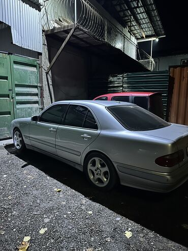 Mercedes-Benz E-Класс (W210) седан, серебристый цвет. Основные характеристики: - Кузов: 4-дверный седан, фирменная классическая оптика “глазки”. - Двигатель: бензиновый (семейство W210, рядные/V-о...
