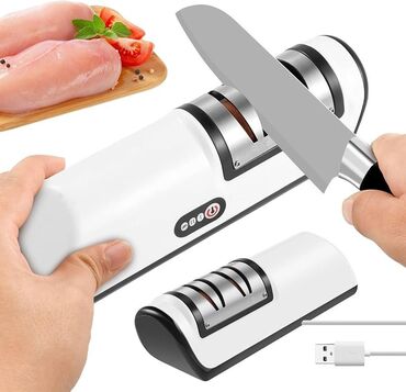 Продам электрическую точилку для ножей- белая (Model H8). Многофункциональная, полностью автоматическая зарядка через USB, два вида заточки, 2 скорости регулировки. Работает от сети и от аккумулято...