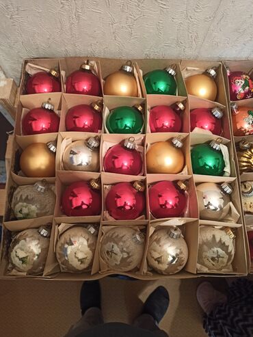 Продаются набор ёлочных украшений (стекло), крупная коллекция в коробках с ячейками.