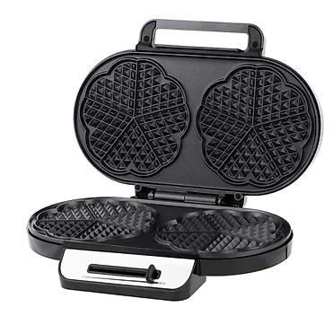 - Двойная рабочая зона: одновременно выпекает две вафли в форме «четырёхлистника» (каждая вафля делится на сегменты).