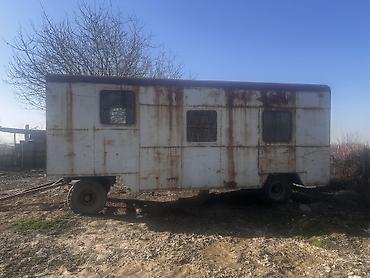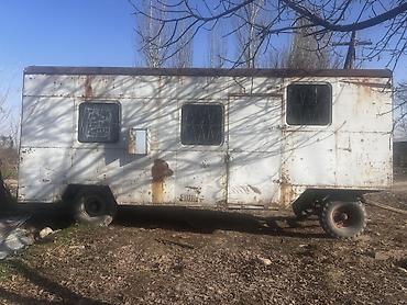 Передвижной вагончик/бытовка на колесной раме. Описание: - Корпус металлический, прямоугольный, с утепленной крышей. - Две раздельные оконные секции с деревянными рамами. - Центральная входная две...