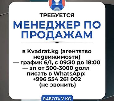 Вакансия: Менеджер по продажам в агентстве недвижимости Kvadrat.kg