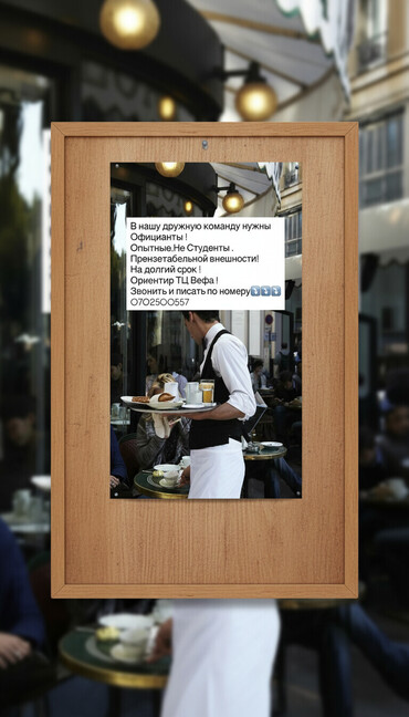Официант срочно керек! Только девушки Район эске автовокзалДоговорная